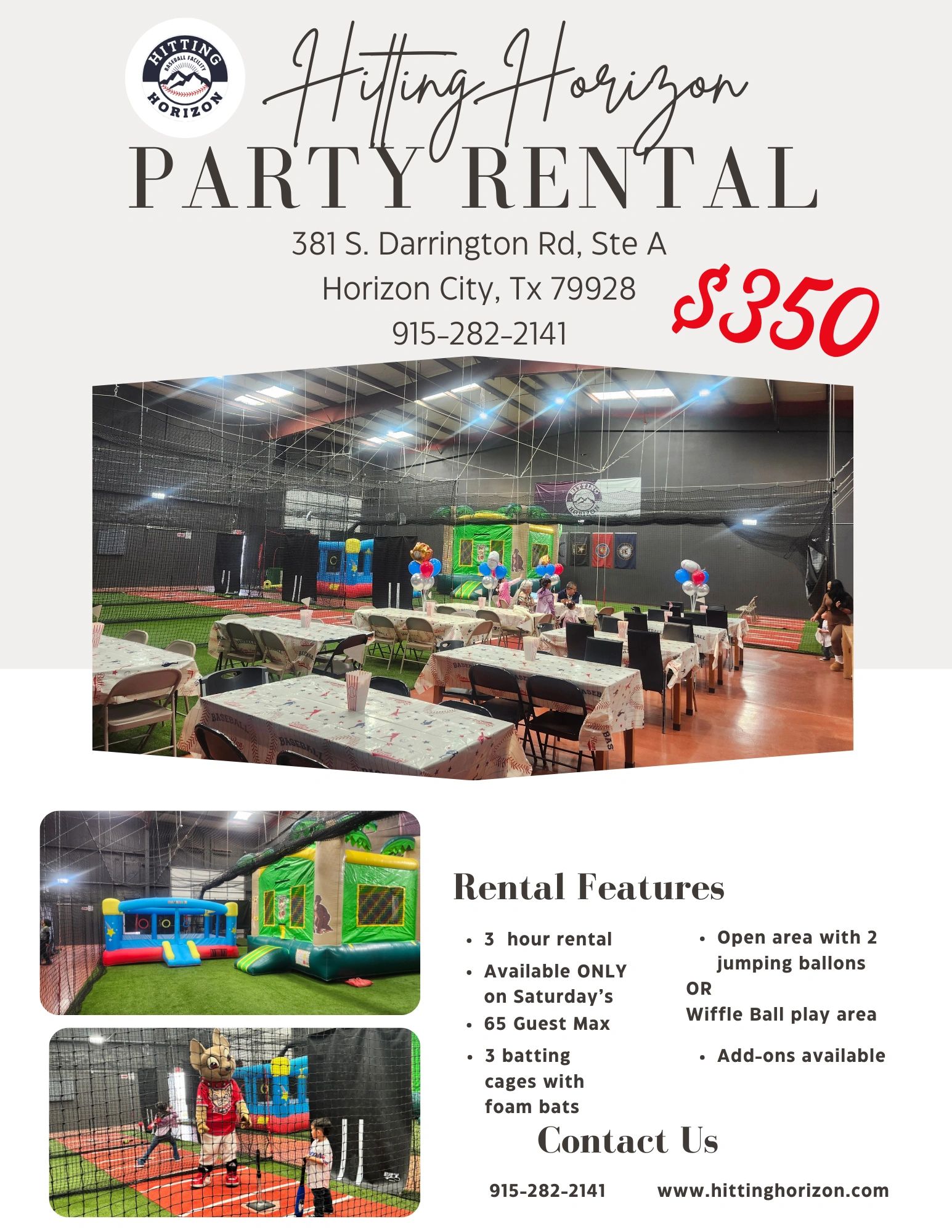 Celebrate your birthday party at Hitting Horizon Baseball Facility! Bring your friends and family to have so baseball fun.
